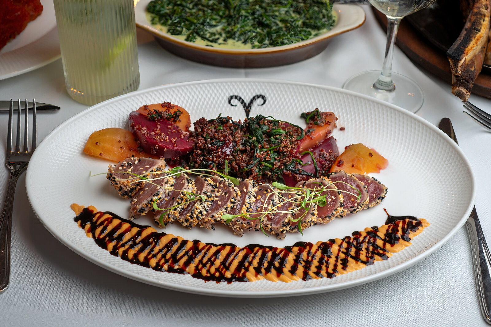 Beets, Spinach, Red Quinoa, Spicy Mayo, Soy Reduction